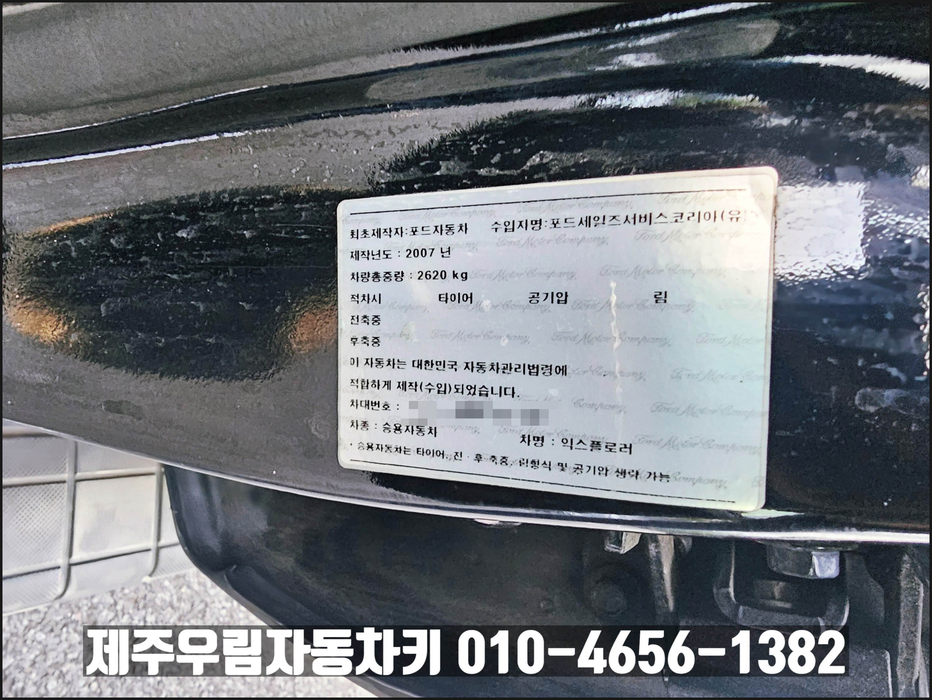 오늘 만난 차량은 포드 익스플로러 차량입니다. 해당 차량은 2007년식 차량으로 스마트키를 사용하는 차량이었습니다. 그런데 차량에 있는 정식 제원에는 단순히 익스플로러라고 기재되어있지만, 차대 번호로 조회해보니 포드 익스플로러 스포츠 트랙 이었습니다.